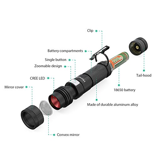SUPER BRIGHT 950 LUMENS (Max Output): The maximum output of HomeXin USB Flashlight is 950 lumens, with cree LED life span of 100,000 hours.