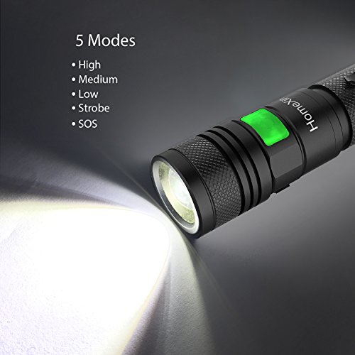 USB Flashlight, HomeXin 5 Adjustable Modes LED Focus Rechargeable Flashlight, Ultra Bright with 950 Lumens, Water Resistant for Camping, Hunting, Fishing & Hiking