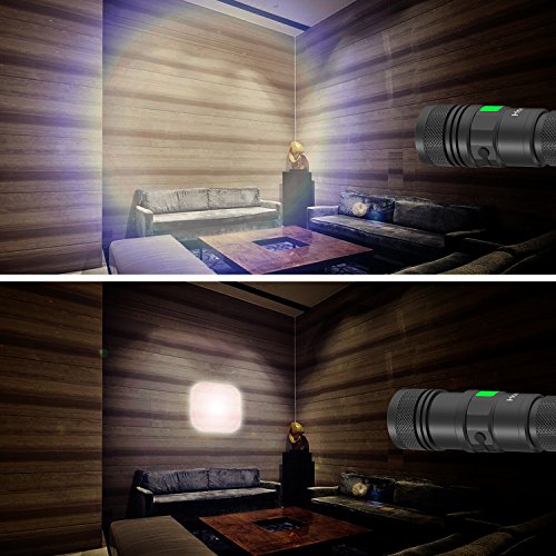 INTELLIGENT POWER REMINDER: This LED Torch is equipped with a intelligent reminder which can indicate the power of the flashlight. Button green light means the power is full. Red light indicates that the power is lacking and the twinkling red light means the flashlight needs to be charge.