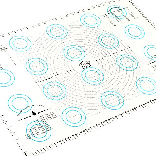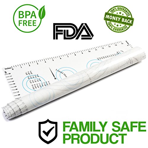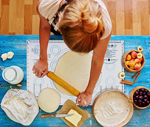 Jumbo Pastry Mat with Measurements, 20 x 30 Inch Silicone Fondant Sheet, Non-Slip Sticks to Countertop for Rolling Dough, BONUS Baking Mat Included