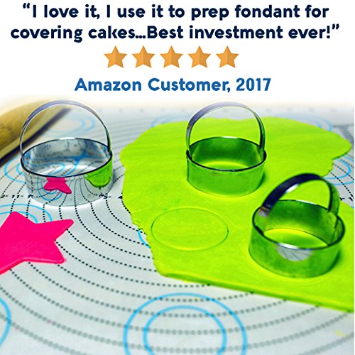 STICKS TO COUNTERTOPS & STAYS IN PLACE: Made with only Safe Materials, this silicone sheet mat stays put when you place it down and does not lift or slide out of place when rolling dough or fondant.