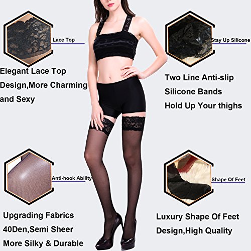 -. Title : MERYLURE 2 Pairs Sheer Lace Thigh High Stockings Silicone Hold Up Nylon Pantyhose