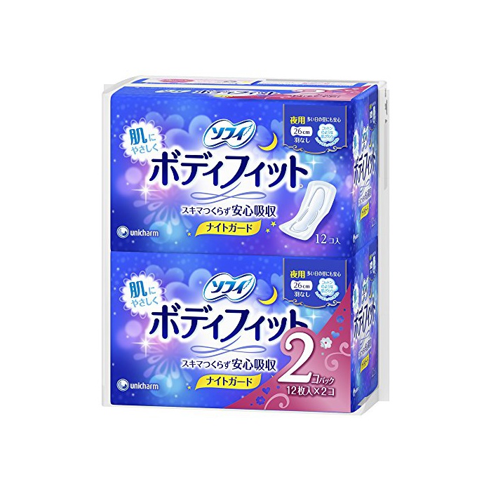 원본상품명: ソフィ ボディフィット ナイトガ?ド 夜用 26cm 12枚×2個パック(unicharm Sofy)