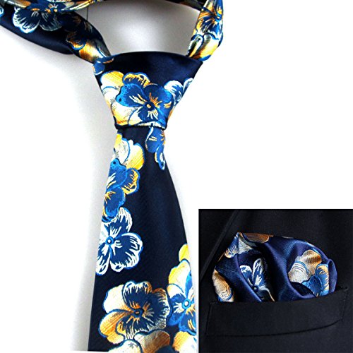 (MYHB)/Accessories/Ties/DIRECT FROM USA/MYHB Blue Floral 100% Silk Men's Tie Neckties Ties for Men Wedding Fashion