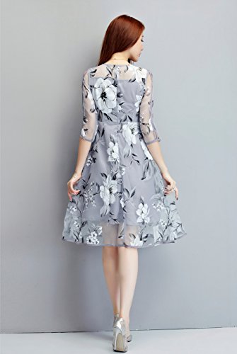 -. Title : (ソーロ トゥ) SOLO TU 上品 花柄 フレア 膝丈 ワンピース 七分袖 結婚式 パーティ Aライン ドレス コード レディース