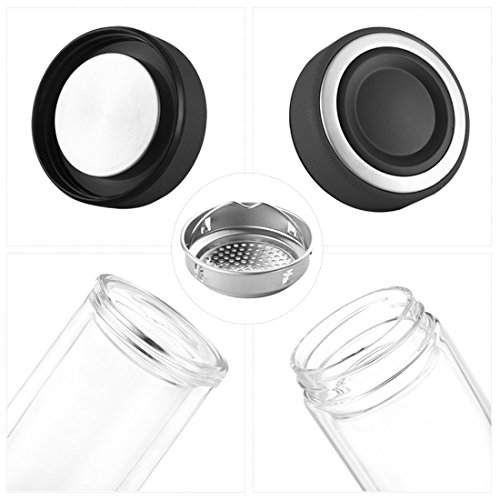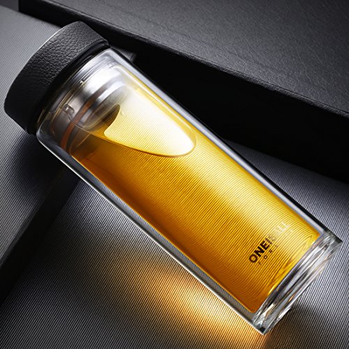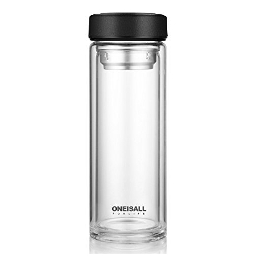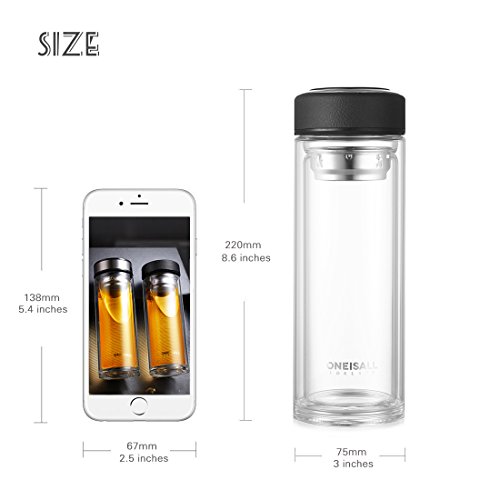 ONEISALL 500ml Glass Water Bottle with Tea Infuser, BPA and PVC and Lead Free, QGYBL110 Devoted to provide good quality and eco-friendly tea accessories with durable and leak-proof feature. It is Perfect for home, car (it fits in your cup holder), yoga, gym, office or on the go.
