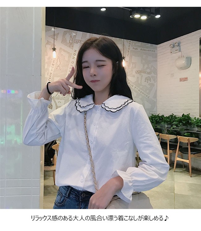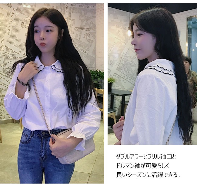 | 商品名 | フリルシャツ インナーシャツ 秋冬シャツ レディース ダブルカラー 長袖 トップス ブラウス ゴム入り袖口 可愛い 2017秋新作 |