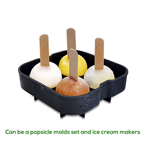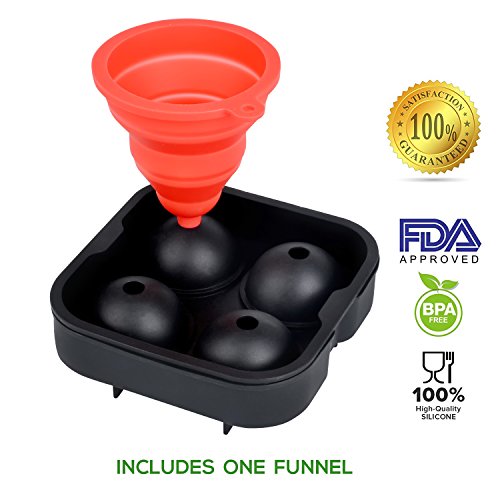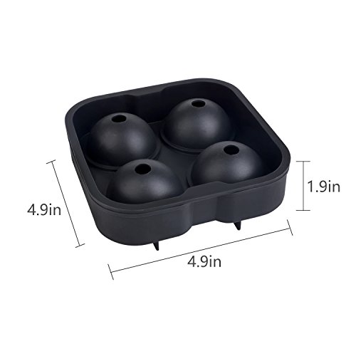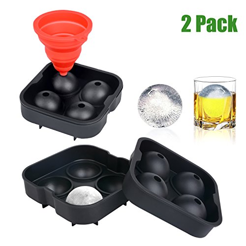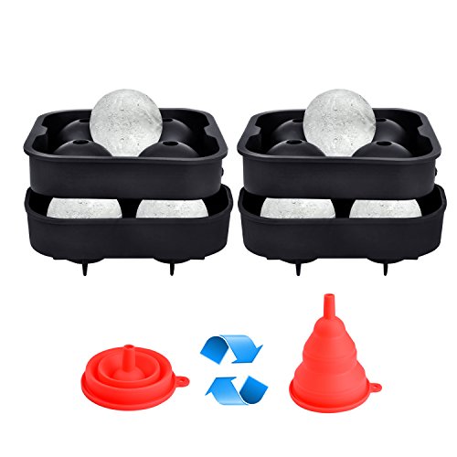 WONTECHMI Ice Cube Trays, Set of 2, Silicone Sphere Whiskey Ice Ball Maker with Lids and a Funnel for Cocktails & Bourbon, Popsicle Molds Set and Ice Cream Makers, Reusable, Christmas Gift (BLACK)