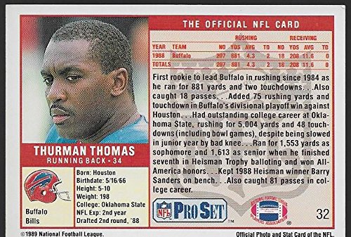 Thurman Thomas 1989 Pro Set Football Rookie Card # 32 - Buffalo Bills - Stored in a Protective Plastic Display Case!!