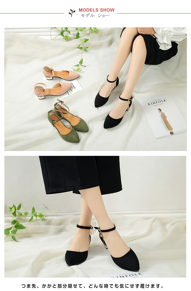 | コーデを選ばないデザイン&抜け感のあるペタンコシューズ。つま先、かかと部分隠せて、どんな時でも気にせず履けます。ちょっと見てもかわいいポインテッドトゥで働く女性にもおすすめ。甲浅カットで女性らしい、スマートなシルエットになります。たくさん歩けて疲れにくい!脱ぎ履きしやすいのに、足首をしっかりホールドしてくれるストラップ付きで脱げちゃうストレスがありません。どんなコーデに合わせやすく、ローヒールで歩くのが楽だから、毎日履きたくなる! | |