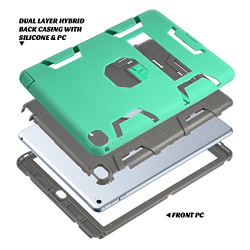iPad Air 2 Case, ULAK Hybrid Rugged Shock-Absorption Three Layer Protective Case for Apple iPad air 2 (9.7" inch) / iPad 6 2014 Release (Green+Grey)