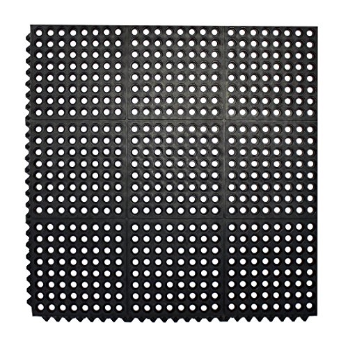 Durable Anti-Fatigue Rubber Floor Mat, Interlocking Commercial Floor Mat 3' x 3' Feet Entrance Mat