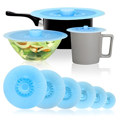 -. Feature : SET OF 6 - INCLUDING EXCLUSIVE 12" LID: A range of sizes to suit every mug, pot, pan, and bowl. Each set includes 5", 6", 7", 8", 10" lids, and our exclusive extra large 12" lid ideal for frying pans and larger pots and bowls. / SAFE & SECURE TO USE FOR ALL: Each lid has a large and secure easy grip handle that makes it safe and secure to use even on hot pans. The lids are premium GRADE silicone that is FDA approved and BPA free / EASY TO USE, EASY CLEAN, EASY STORE: Keep food fresh with with a silicone suction lid - simply place the lid on your pot or pan and push down to form a suction seal. They can be used in the oven, microwave, or on the hob and are heat proof up to 450f. Easy to wipe clean or put in the dishwasher. Easy to store to by stacking the lids - the handles fit inside each other! / ECONOMICAL - WILL SAVE YOU MONEY: No need to buy any more cling film/plastic food wrap - use a silicone bowl lid! Re-use again and again. The lids can be used in the oven, mircowave, fridge or freezer. / GREAT GIFT FOR ALL COOKS AND CHEFS: Don't keep it to yourself - who do you know that would find a set of lids so much easier than strling with plastic food wrap?