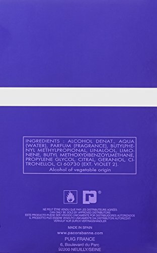 This is an interesting masculine fragrance, more intense and provocative than the feminine version. Gray amber is in the limelight enhanced by the notes of mint, vetiver and moss . The bottle design deserves attention; just like the bottle for the feminine version, this one was made using glass, silicone and metal. Purple is the color of the third millennium, the Age of Aquarius, according to astrologers and Paco Rabanne himself. It was created in 1999. The nose behind this fragrance is Jacques Cavalier. This product is manufactured in France.Feature