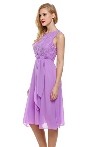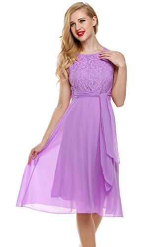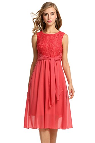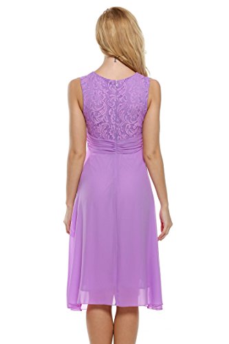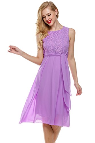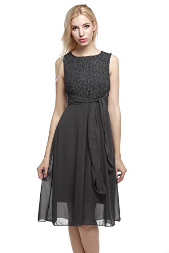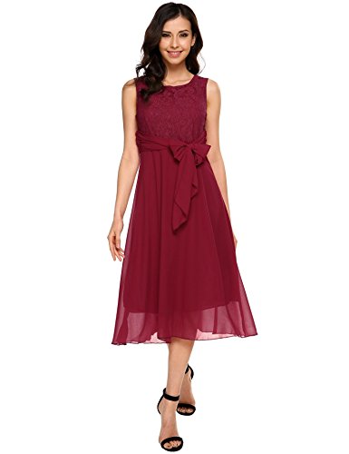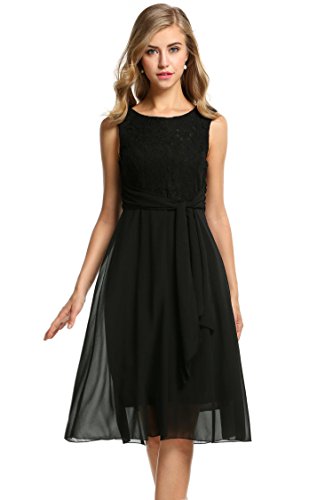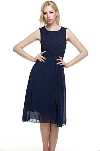 Elegant O-neck sleeveless high waist midi sundress, lace chiffon patchwork with fully lined, back zipper closure, suitable for a variety of occasions