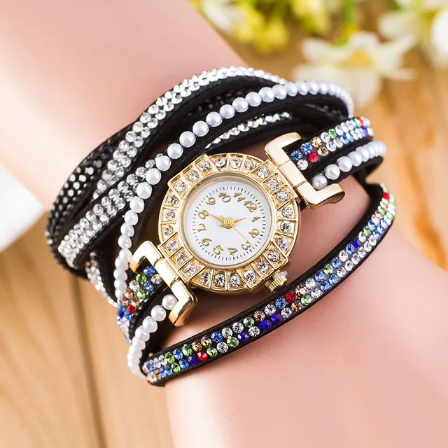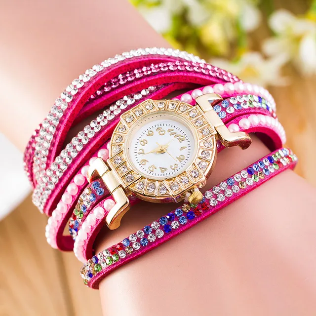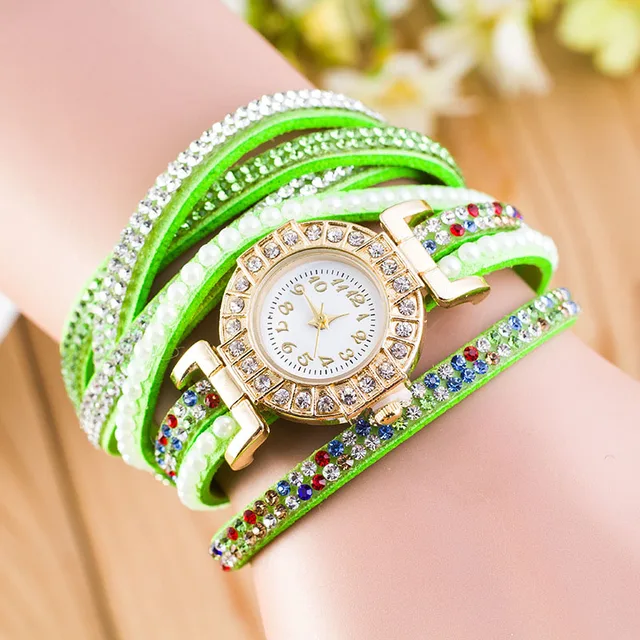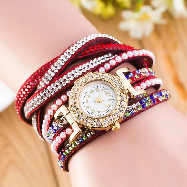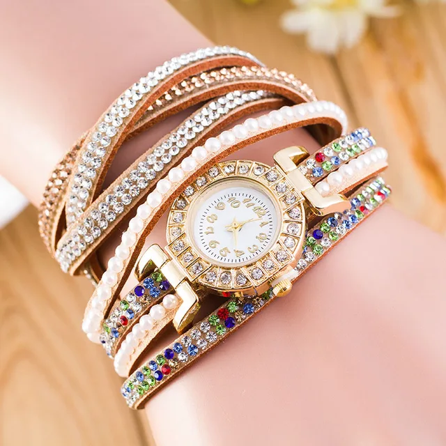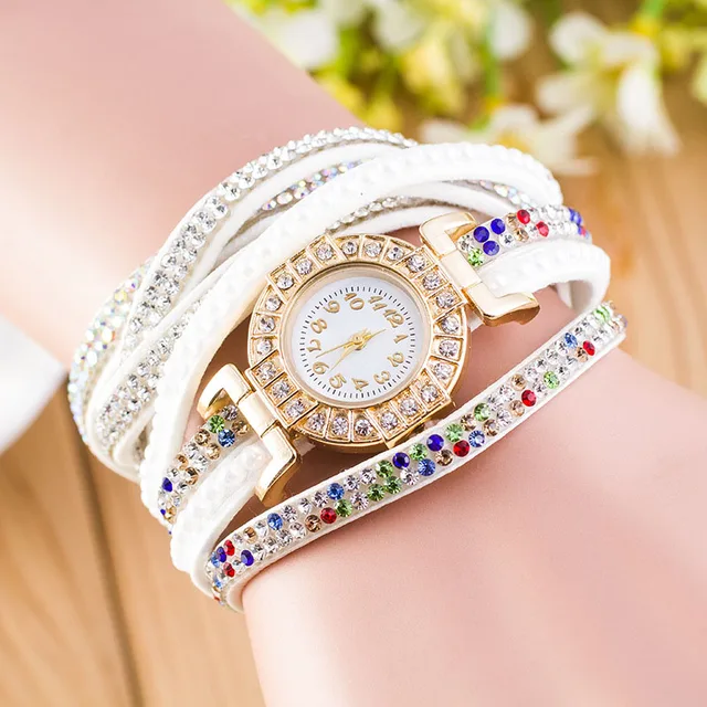 | [해외] 패션 가죽 팔찌 시계 여성 캐주얼 드레스 빈티지 라인 석 손목 시계 럭셔리 석영 시계 다이아몬드 Famale 시계 |