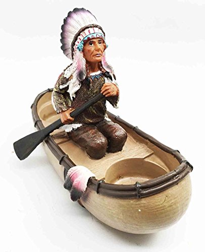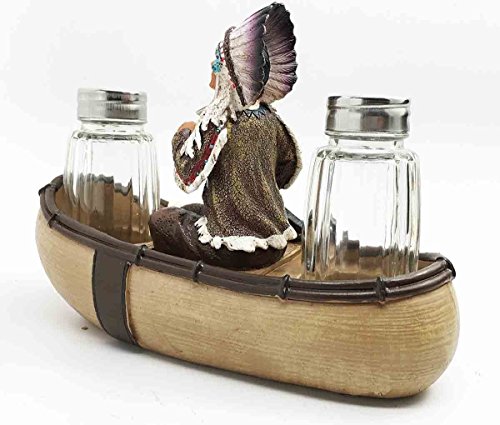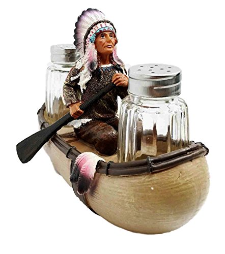Decorative Native American Indian Trade Boat Chief With Headdress Glass Salt and Pepper Shaker Figurine Set