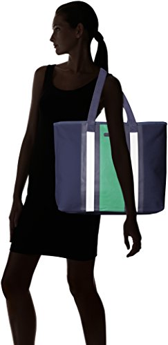 - Feature : One interior zip pocket / Oversized shoulder bag in stripe motif featuring contrast trim, rubber logo plaque, and zippered top