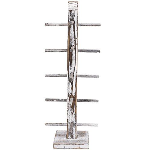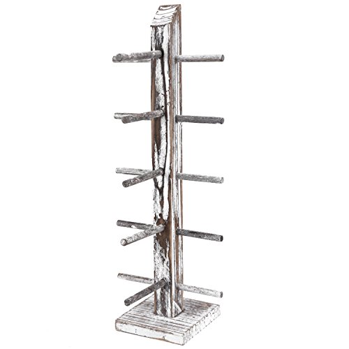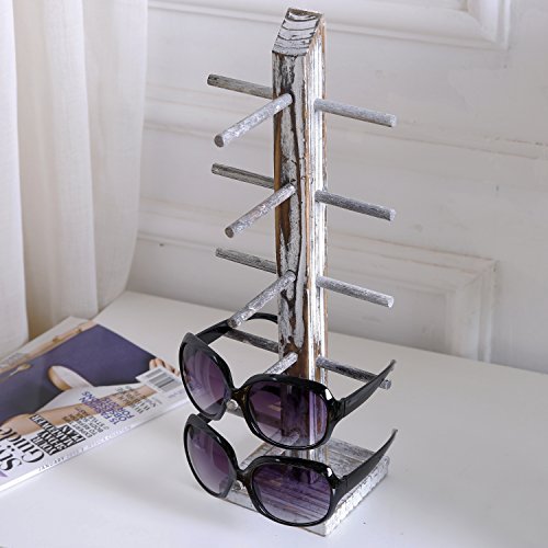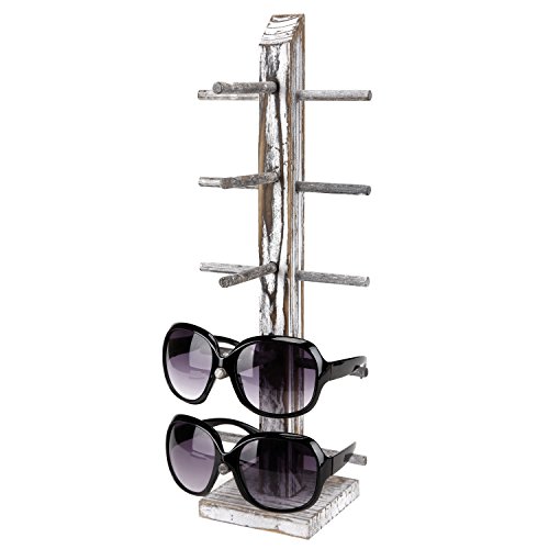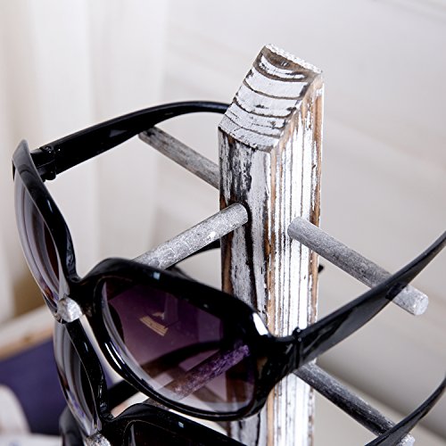 Rustic Whitewashed Wood 5 Pair Sunglasses Collections Display Stand, Tabletop Retail Eyewear Storage Rack