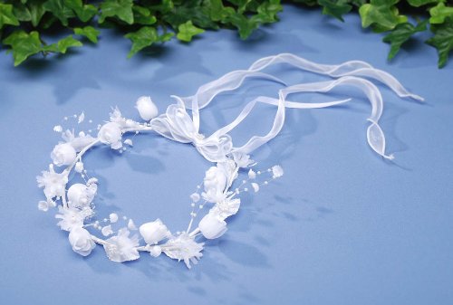 Darice VL6301 Crown Finish Girl Headpiece with Rose and Lilly Flowers, White