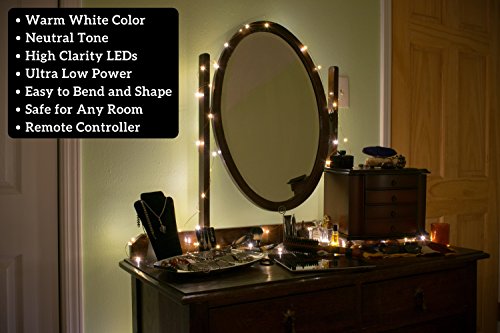 - ✓ WARM WHITE COLOR - 100 Warm White LEDs in copper strand for easiest bending and forming around objects | These string lights will stay in place much easier than typical plastic wire lights