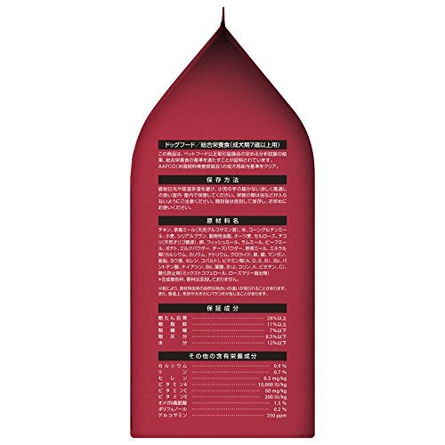 原材料:チキン、家禽ミール(天然グルコサミン源)、米、コーングルテンミール、小麦、シリアルブラン、動物性油脂、オーツ麦、セルロース、チコリ(天然オリゴ糖源)、卵、フィッシュミール、ラムミール、ビーフミール、ポテト、ミルクパウダー、チーズパウダー、野菜ミール、ミネラル類(カルシウム、カリウム、ナトリウム、クロライド、鉄、銅、マンガン、亜鉛、ヨウ素、セレン、コバルト)、ビタミン類(A、D、E、B1、B2、パントテン酸、ナイアシン、B6、葉酸、B12、コリン、K、ビオチン、C)、酸化防止剤(ミックストコフェロール、ローズマリー抽出物)