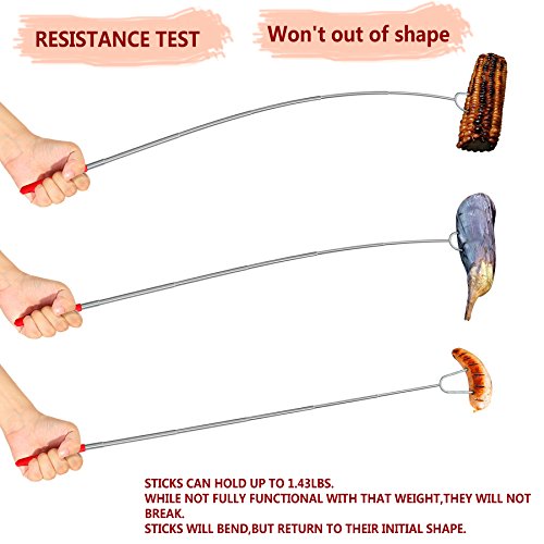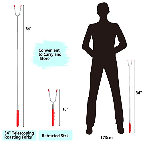 EXTENDABLE & SAFE for CHILDREN - Expanding from 10" to 34" Telescoping Hot Dog Sticks Keep You and Kids Stay Away From any Patio Fire Pit, Backyard Fire Pit, Bonfire Pit, or Campfire. Sharp Tips are Protected with Rubber, Which Makes Them Perfect for Handling Around Children and Let Them a Must have for BBQ.