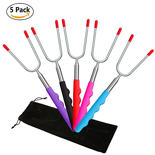 Marshmallow Roasting Sticks, HUGALLUR Smores Sticks for Campfire, 34" Telescoping Extendable Hot Dog Smores Forks (Set of 5)