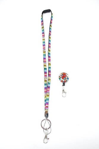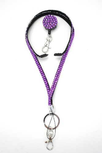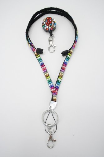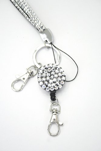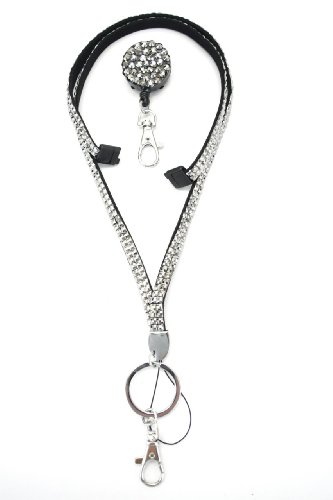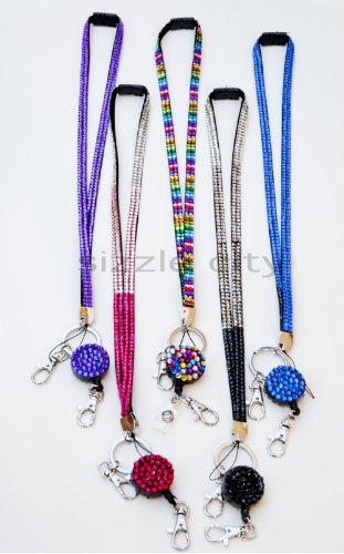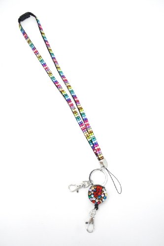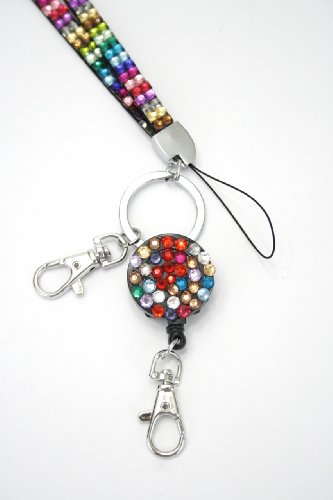 | Retractable Colorful Rhinestone Lanyards with Breakaway Feature, ID Badge Holder Key Chain |