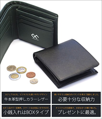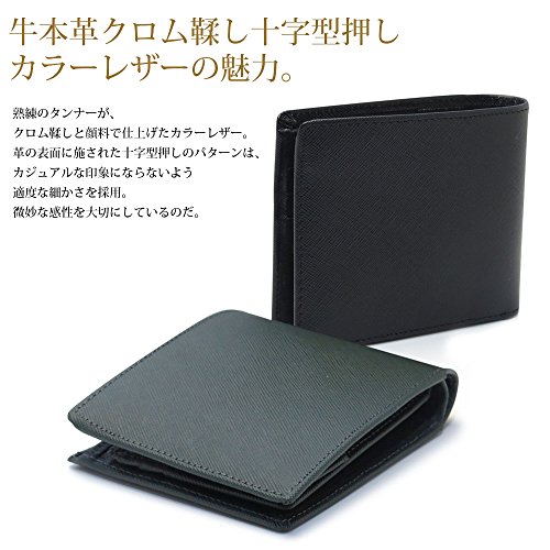-. Feature : ✅【牛本革型押しカラーレザー】熟練したタンナーがクロムなめし、顔料で仕上げた牛本革(ギン面革)に十字型押しを施しました。革の表面に施されたパターンは、あまりカジュアルな印象にならないように適度な細かさを採用しています。 / ✅【必要十分な収納力】札入れ2ポケット(領収書・お札と使い分けできます。)カード入れ(頻度の高いカード6枚収納、その他カード入れ3ポケット) / ✅【小銭入れはBOXタイプ】小銭入れ(ボックスタイプで一目瞭然で、スマートなお支払いが可能。小銭がたまりにくいです。) / ✅【プレゼントに最適】オリジナルの化粧箱に入っています。大切な方への贈り物にも最適です。 / ✅【サイズ】11.5cm×9.5cm×2.3cm ポケットにもスムーズに入るサイズです。