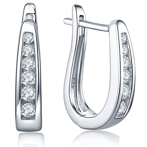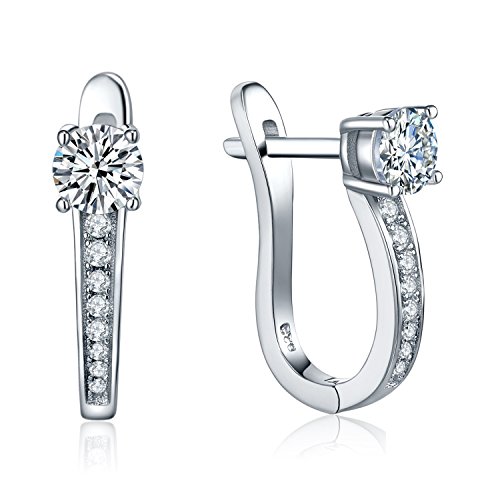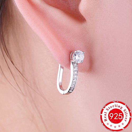 Silver Hoop Earrings Jewelry for Women-YL Sterling Silver CZ Cubic Zirconia Hoop Earrings Dangle Drop Charms-Girls White Gold Plated Hoop Earrings-Crystal Huggie Stones Design Medium Hoop Earrings-Silver Hoop Earrings Jewelry for Women-YL Sterling Silver Cubic Zirconia CZ Hoop Earrings Dangle Charms-White Gold Plated Hoop Earrings for Girls-Hypoallergenic Womens Hoop Earrings Huggie Design Medium with Stones