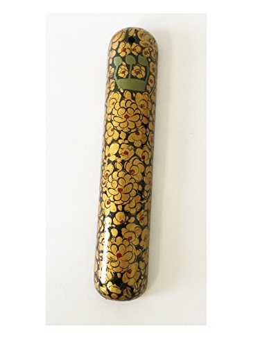 Alef Judaica Paper Mache Mezuzah Case - Black with Gold and Red Flowers