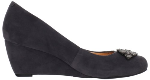 - Feature : Simple slip-on silhouette / Supple leather or suede upper / Metallic man-made insole and lining create a lightly padded footbed / Jewel-encrusted embellishment adds decorative distinction to the vamp / Elegantly wrapped wedge heel