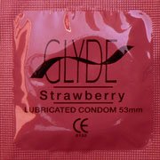 - Feature : GLYDE organic flavored condoms in juicy Strawberry tastes like the real thing - no fake chemicals or sugar added / GLYDE's premium natural latex condoms are made with the highest quality of sustainably grown, extra silky natural rubber latex - both partners will feel the difference. / GLYDE medium-fit organic flavored condoms are extra sheer and strong FDA & CE approved / A natural choice free of parabens, glycerin, and other risky chemicals. / Available in ULTRA standard/ medium (53mm) fit perfect for most men