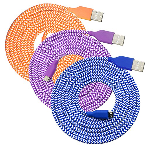 OKRAY 3 Pack 10ft 3M High Speed Braided Nylon Tangle-Free Micro USB 2.0 Charger Cable Sync Charger Charging Cord for Android, Samsung Galaxy, HTC, Google Nexus, Sony, Nokia, LG (Blue Orange Purple)