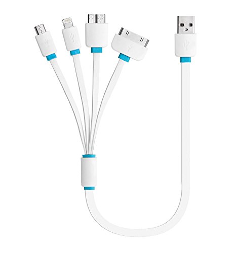 J2CC :: MAKES YOUR DIGITAL LIFE EASY Superior quality: On one end is a standard USB cable that can be used with any USB source. From 4 cables split off including a Micro-USB Smartphones - Standard USB plug splits to micro USB 2.0, micro USB 3.0, 30 Pin , 8 Pin compatible plugs. With the 4-in-1 cable you can charge multiple devices at the same time from one USB port, or simply have the right cable handy for almost any device when you need it! Wide compatibility Apple: iPhone 4, iPhone 4S, iPad 1, iPad 2, iPad 3, iPhoneSE, iPhone 5, iPhone 5S, iPhone 5C, iPhone 6, iPhone 6, 6s, Plus, iPad 4, iPad Air, iPad mini, iPad mini 2, iPad Air 2 Samsung: Galaxy S6, S5, S4, S4, S3. Google: Nexus 4, Motorola Moto G HTC: HTC One, S, V, Sensation XE XL, First, ThunderBolt, EVO 4G, Inspire, Vivid, Wildfire, Desire, Windows Phone 8X... Nokia: Lumia 920,720,620,520 Sony: Xperia J, Xperia Z, Xperia P,X1,X10,X8,Arc,Neo Blackberry:Z10 Q10,Bold,Tour,Touch,Storm Motorola, LG, Huawei Handsets. LG: Nexus 4,Encore,Optimus, Pro, L9, Motion 4G Huawei: Ascend Y300, G510 ... and much much more... MP3, MP5, and other device with Mini USB port After-sale service and warranty policy -30 Days Money Back Guarantee except for artificial damage -18 Months Warranty after your purchase -Any quality problem for product or unhappy shopping experiences, please do not hesitate to contact us J2CC team, we will try our best to satisfy your request. Your great support and interest are Our biggest motivation for innovation & the improvement of our service. Package included: 1x 4-IN-1 Charging USB Cable 18 Month WarrantyFeature