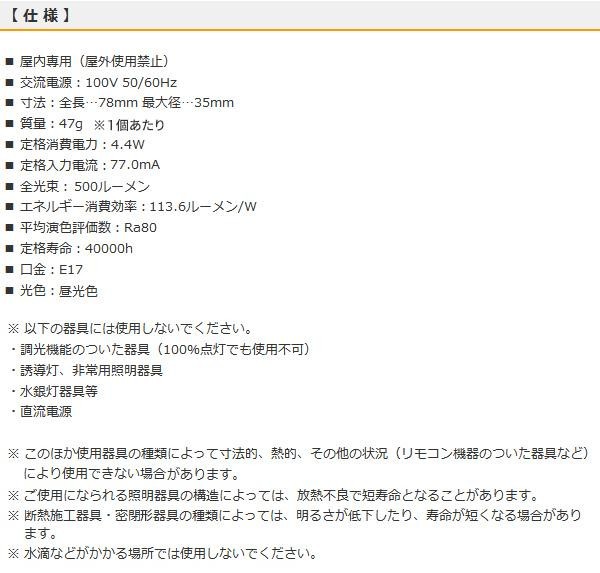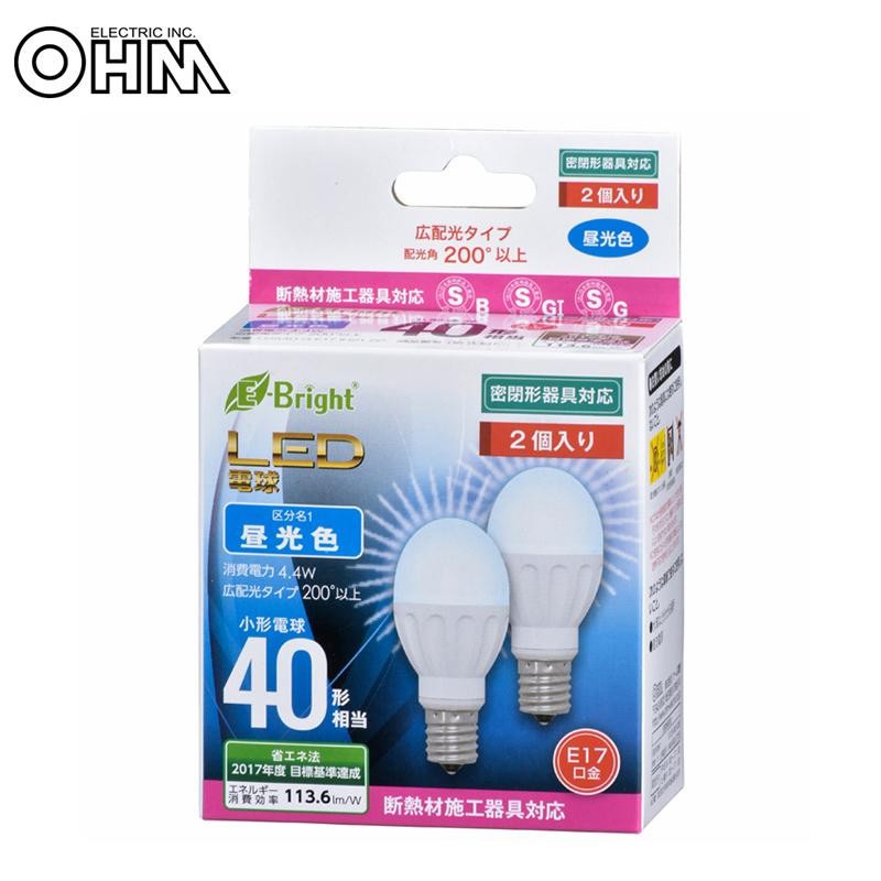 小形電球40形相当の明るさ。密閉形器具/断熱材施工器具対応。光色は昼光色で2個入りです。