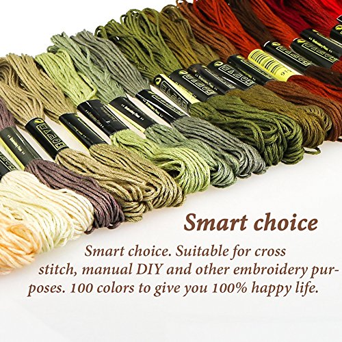 - Premium Material Embroidery Thread – The floss is made of polyester- cotton, glossy and smooth to work with. For the size,it's 8 meters long and 6 strands;100 different color skeins