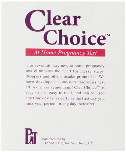 -. Binding : Health and Beauty -. Brand : At Home -. EAN : 0885330620964 -. Feature : Easy read results on cup / Over 99 percent accurate / Results in 1 min -. IsAdultProduct : 0 -. Label : At Home -. Manufacturer : At Home -. NumberOfItems : 3 -. PackageQuantity : 3 -. ProductGroup : Health and Beauty -. ProductTypeName : HEALTH_PERSONAL_CARE -. Publisher : At Home -. Studio : At Home -. Title : Clear Choice At Home Pregnancy Test, 1 test (Pack of 3) -. UPC : 674033190153