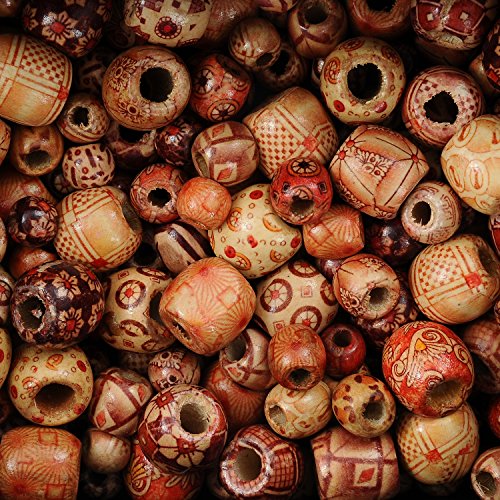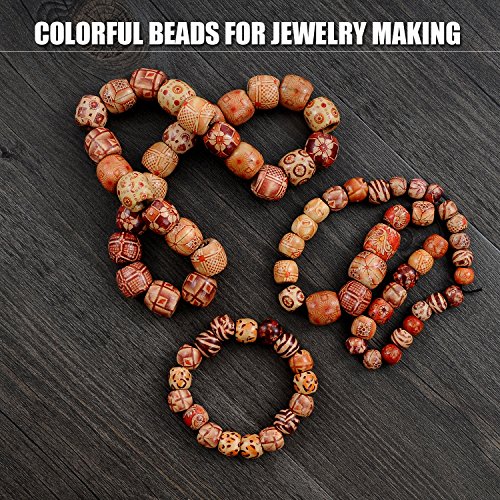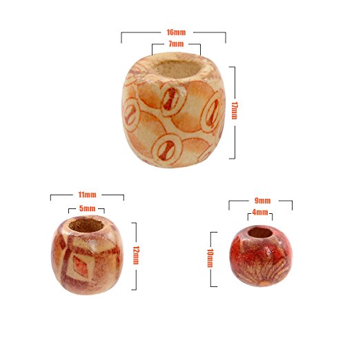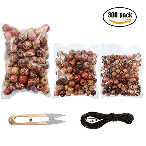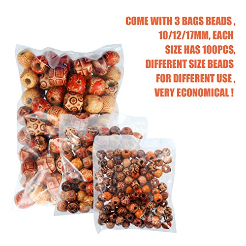 YUEAON 300pcs 10/12/17mm painted wooden beads round loose wood bead for jewelry making hair accessories craft supplies dreadlock macrame diy -3 bags with scissor and elastic cord