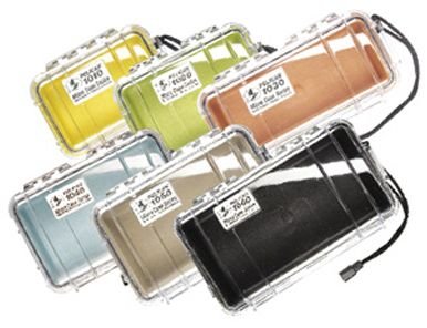 7.5 in. X 5.06 in. X 3.13 in. Black case with black latch liner and purge cap. Made of Copolymer Polypropylene. Case is watertight airtight crushproof and have an automatic pressure purge valve. Includes a carabiner for easy attachment.