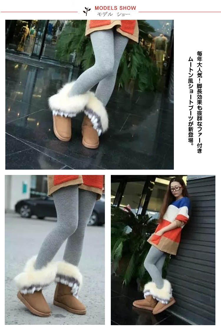 | 毎年大人気!脚長効果も抜群なファー付きムートン風ショートブーツが新登場。たっぷりファーで履き心地あたたかで真冬の防寒対策にも○ソールは軽くて柔軟性のある素材を使用しているので快適な歩行をサポート!秋冬のデートやお買物、お出かけにも大活躍です!!♪ | |