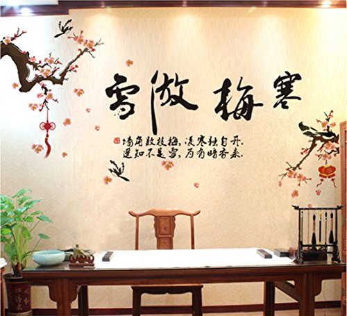 -. Title : Chinese Characters Wall Sticker Decal Quotes "Plum stands proudly in the chill snow" Self Adhesive Paper Home Art Deco Vinyl Wall Removable Decals Stickers Mural Art Wallpaper - 60 x 90cm/23" x 35"