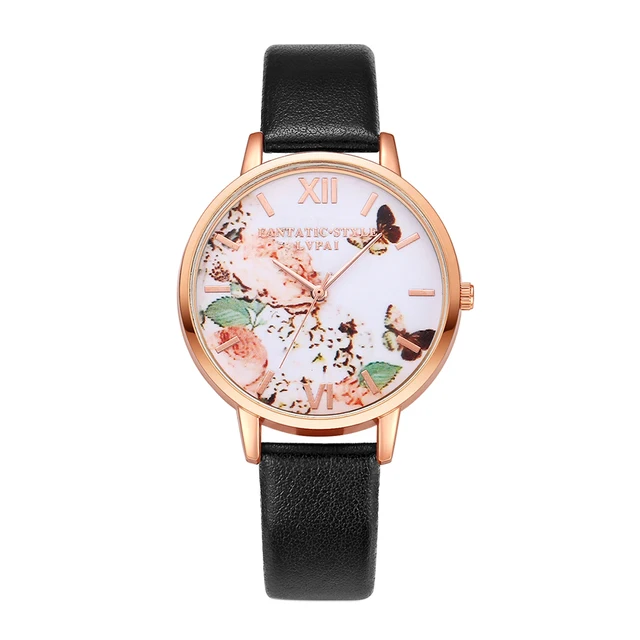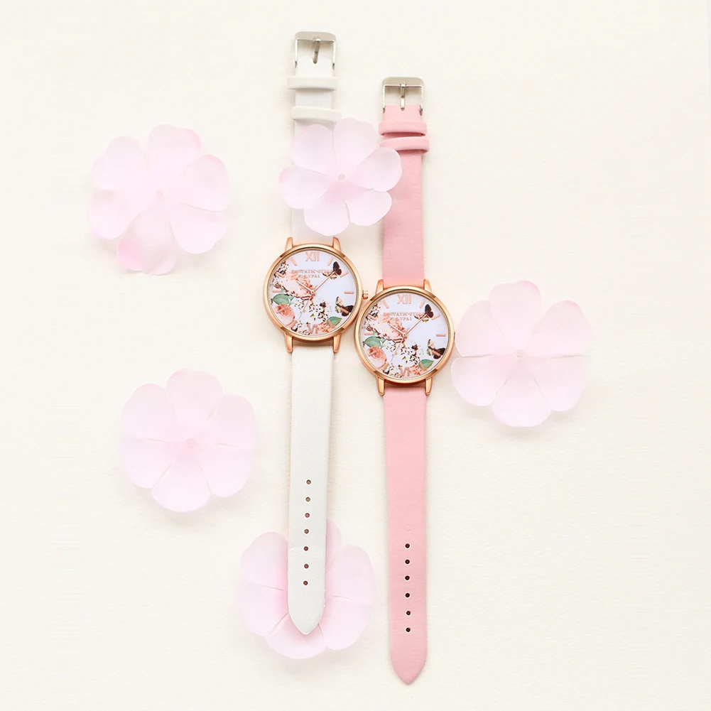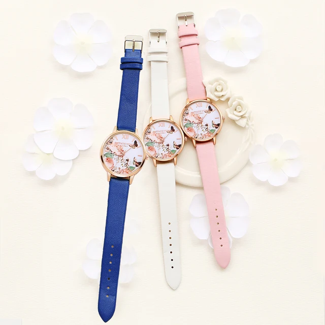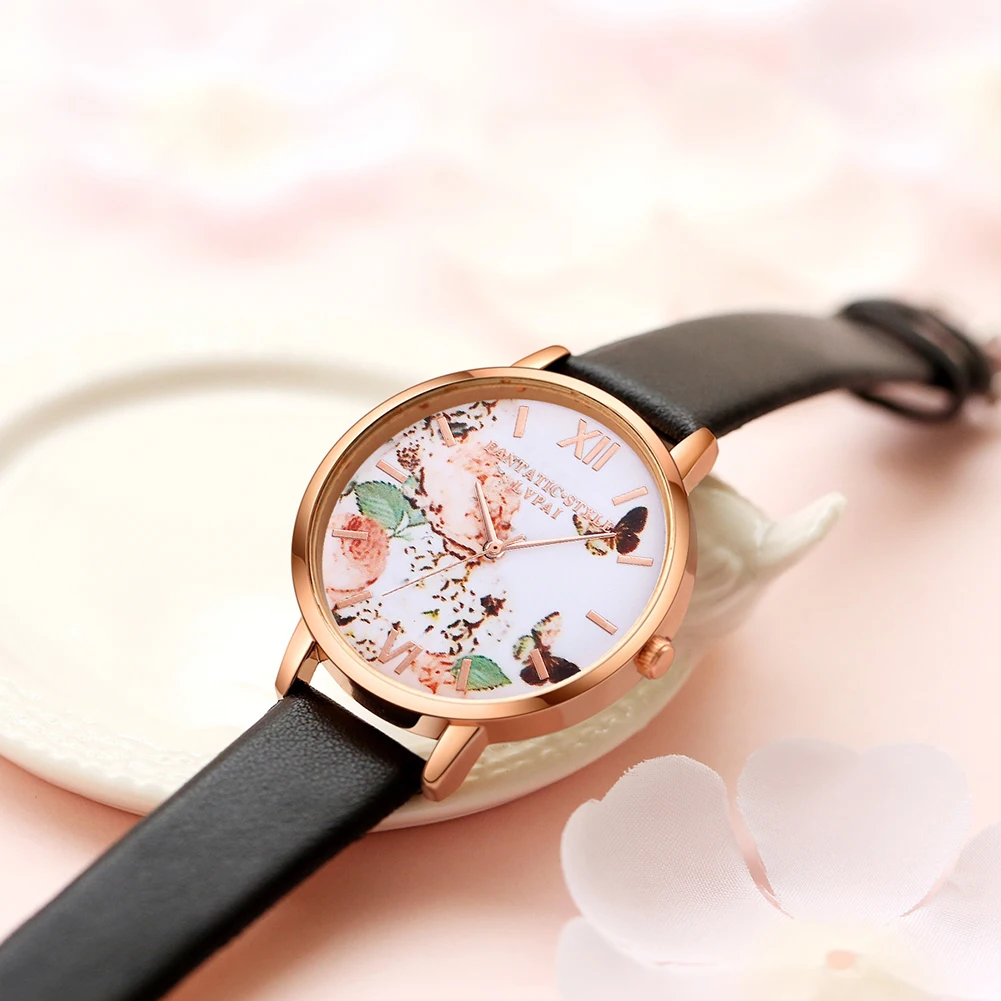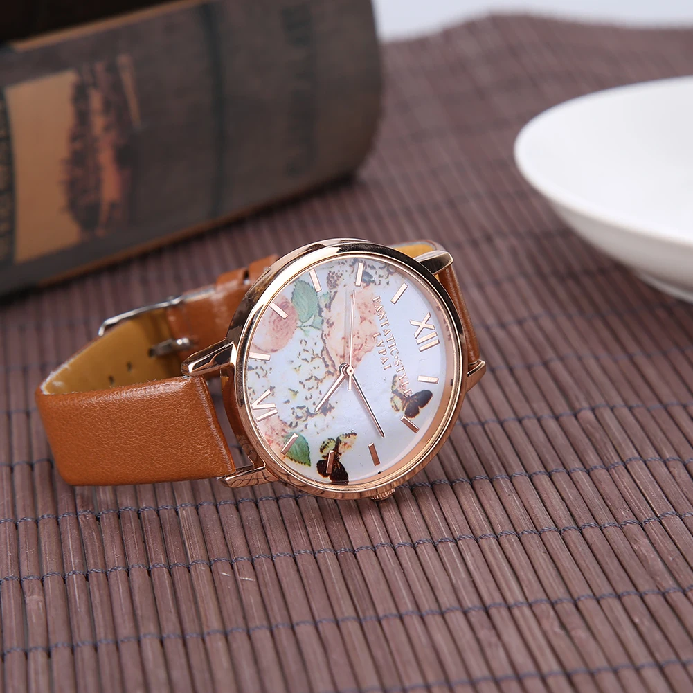 | [해외] 여성 드레스 시계 패션 나비 다이얼 시계 여성 여성 '럭셔리 브랜드 PU 가죽 석영 팔찌 시계 |