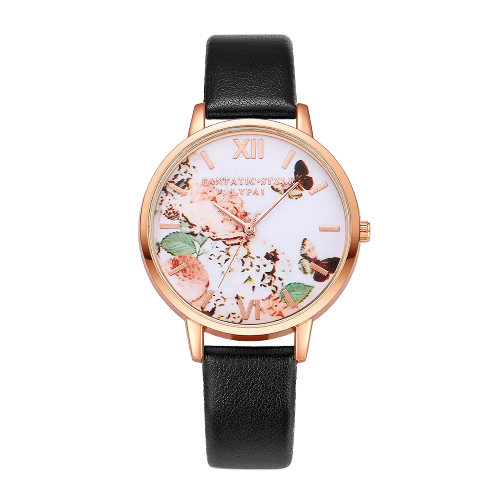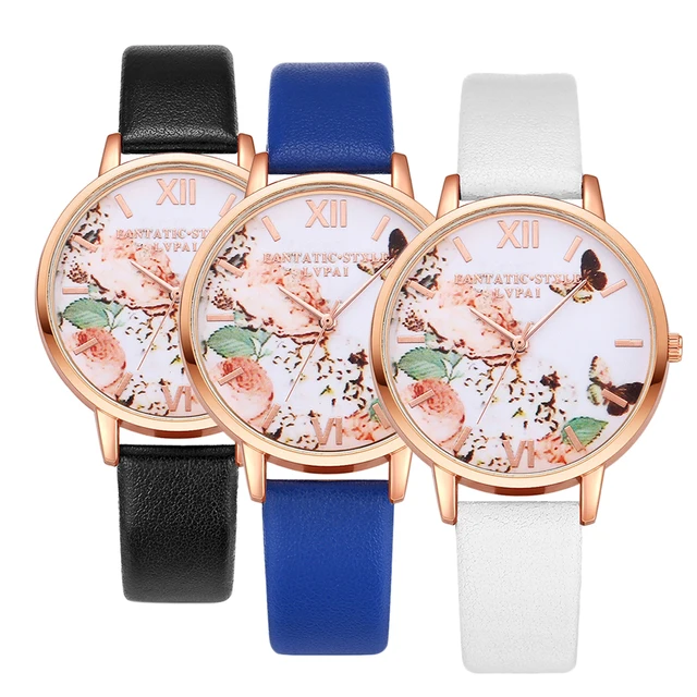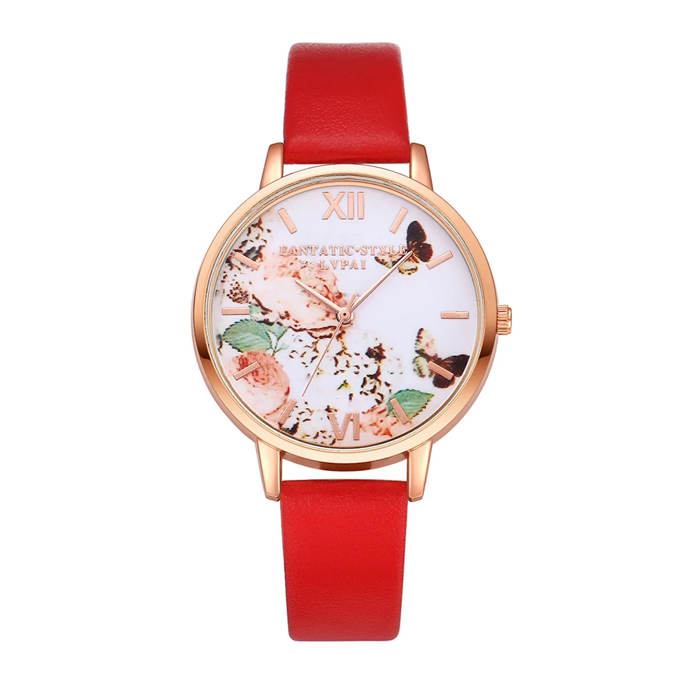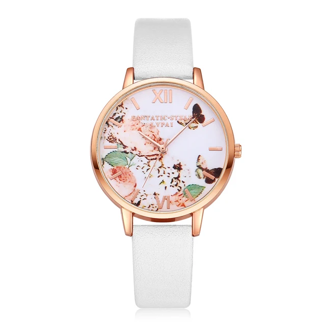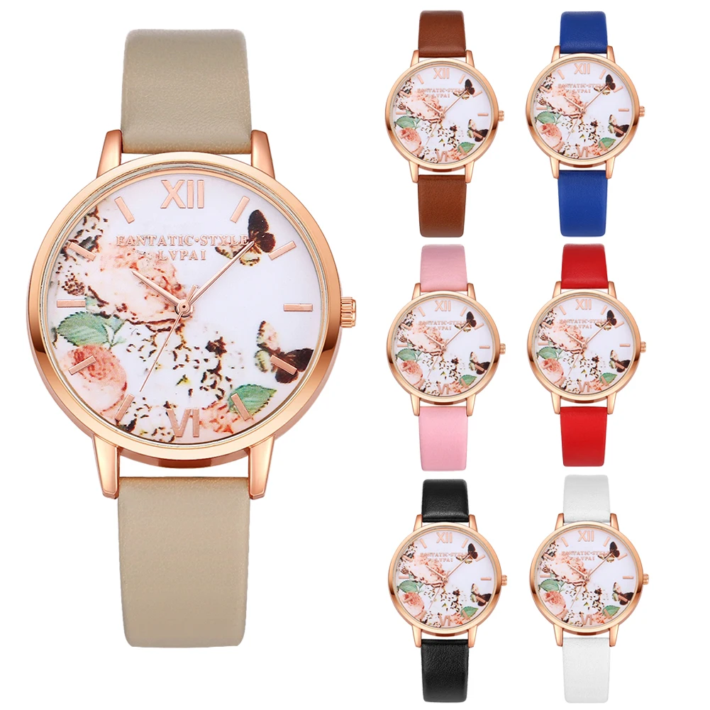 | [해외] 여성 드레스 시계 패션 나비 다이얼 시계 여성 여성 '럭셔리 브랜드 PU 가죽 석영 팔찌 시계 |