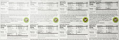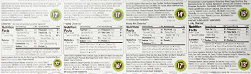 -. Feature : 8 Different Cereals / Honey Nut Cheerios; Cinnamon Toast Crunch;Cheerios; Lucky Charms;Golden Grahams; Frosted Cheerios; Cocoa Puffs; Trix / Whole Grain / Individual Size