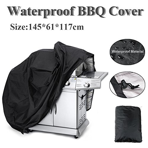 -. Brand : FEESHOW -. Color : Black -. Feature : Waterproof and Dustproof: Protect your Barbecue from rain, dust and sunshine / Good Material: Reinforced thick UV protected polyester for increased durability / Features buckled click-close straps that lock around the legs and keep it attached to your grill even on windy days / Portable to carry: carrying storage bag with drawstring, compact packed size / Offers plenty of coverage, fits so well that it looks custom made. Dimension: 145*61*117cm/57.0*24.0*46.0inch -. Label : FEESHOW -. Manufacturer : FEESHOW -. ProductGroup : Lawn & Patio -. ProductTypeName : OUTDOOR_LIVING -. Publisher : FEESHOW -. Studio : FEESHOW -. Title : FEESHOW Waterproof UV Protection 57 Inch Gas Grill Cover - Thick Heavy Duty Premium BBQ Grill Cover - Portable Outdoor Barbeque Grill Covers