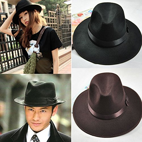 -. Title : FUNOC® Unisex Felt Wool Wide Brim Floppy Bowler Hats Jazz Cap
