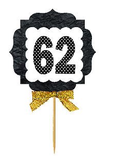 62nd Birthday / Anniversary Gold Ribbon Hand Crafted Novelty Cupcake Decoration Toppers / Picks -12ct