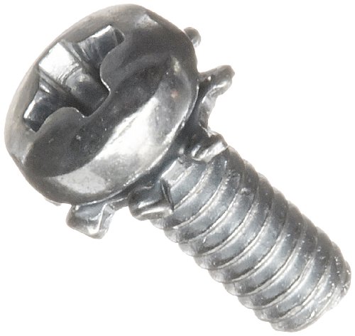 Steel Pan Head Machine Screw With External-Tooth Lock Washer, Zinc Plated, Meets ASME B18.13, #1 Phillips Drive, #2-56 Thread Size, 1/4" Length, Fully Threaded, Imported (Pack of 50)